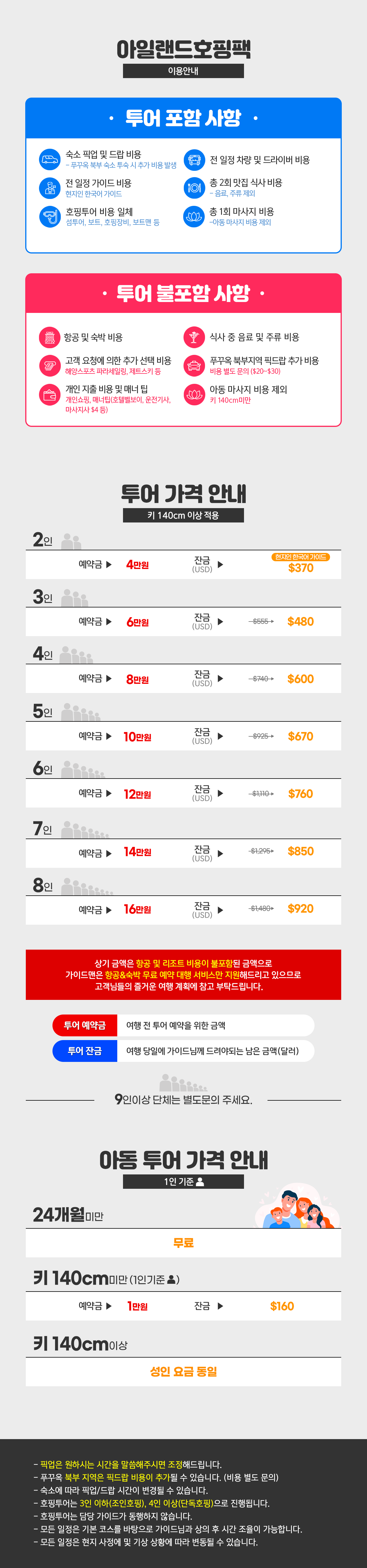 ※2명 여행시 아동/유아는 성인요금으로 받습니다.