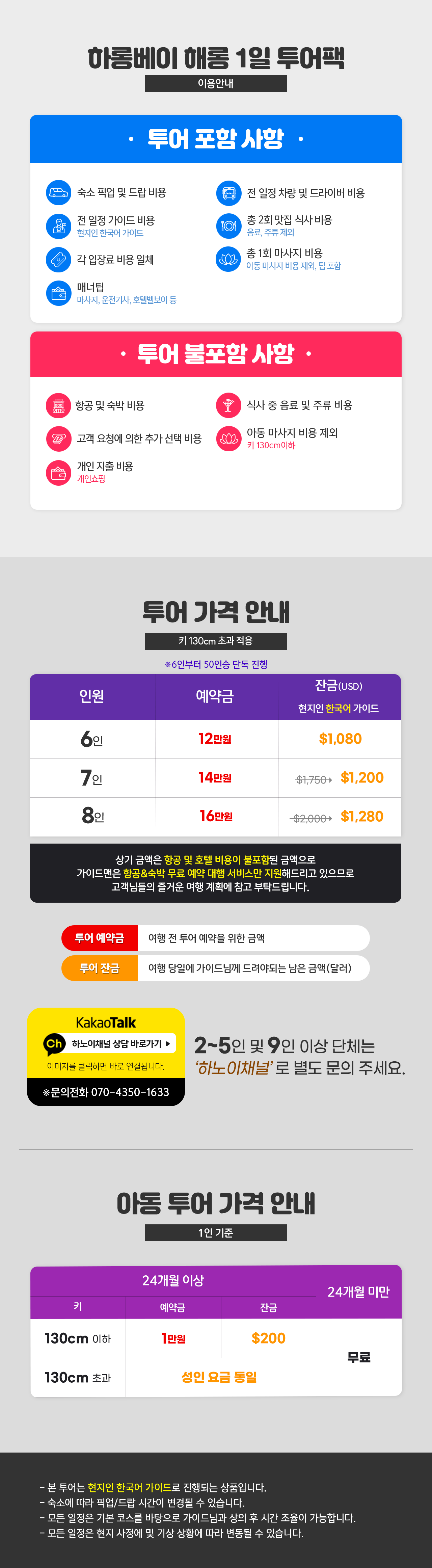 ※2명 여행시 아동/유아는 성인요금으로 받습니다.