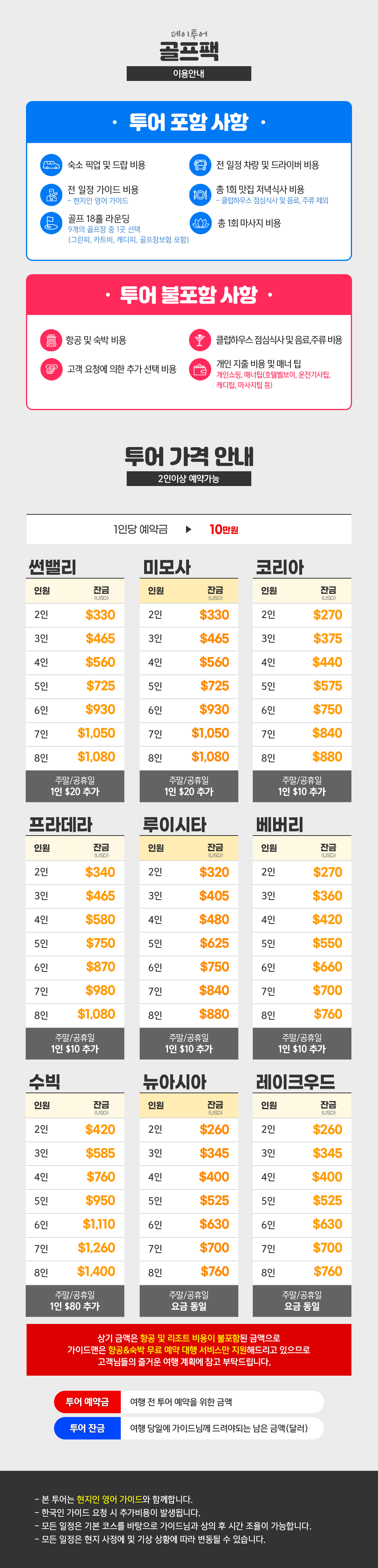 ※ 잔금은 현지 결제 기준입니다