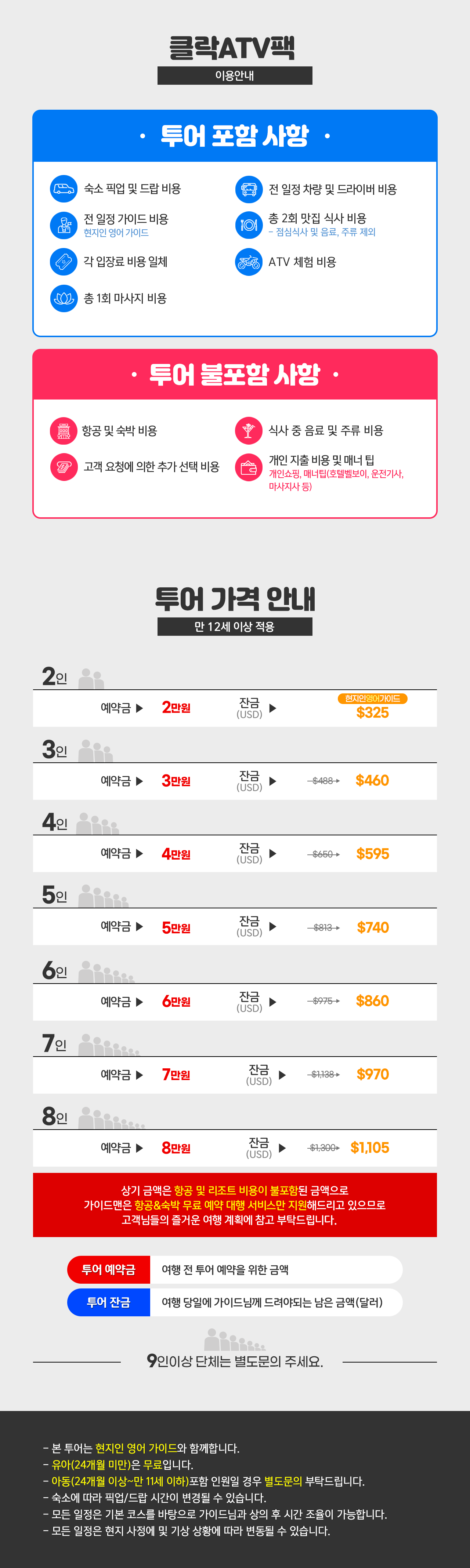 ※2명 여행시 아동/유아는 성인요금으로 받습니다.