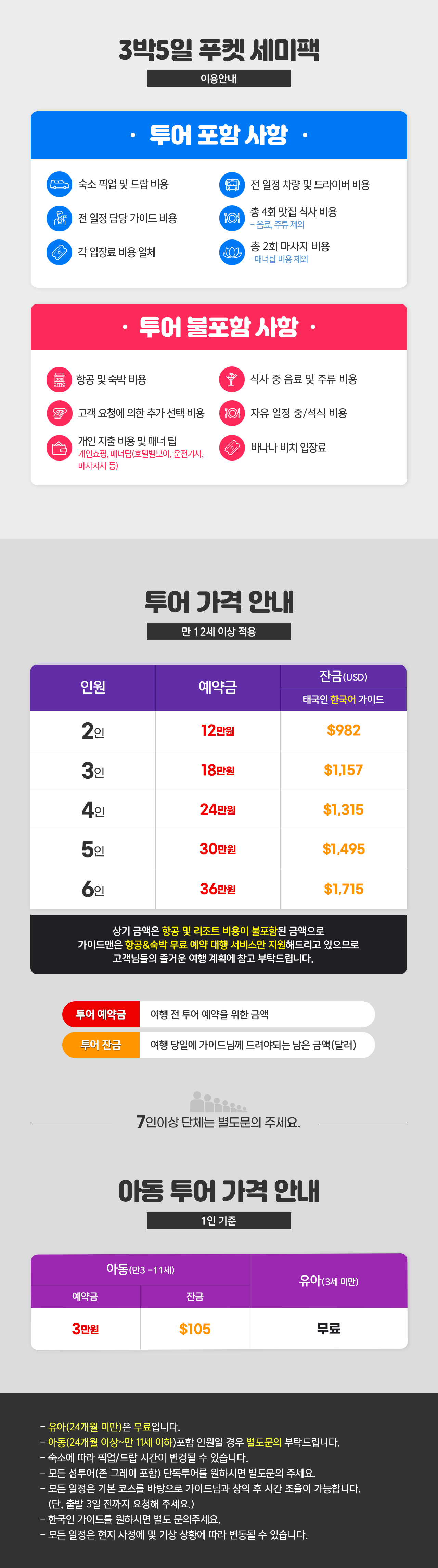 ※2명 여행시 아동/유아는 성인요금으로 받습니다.