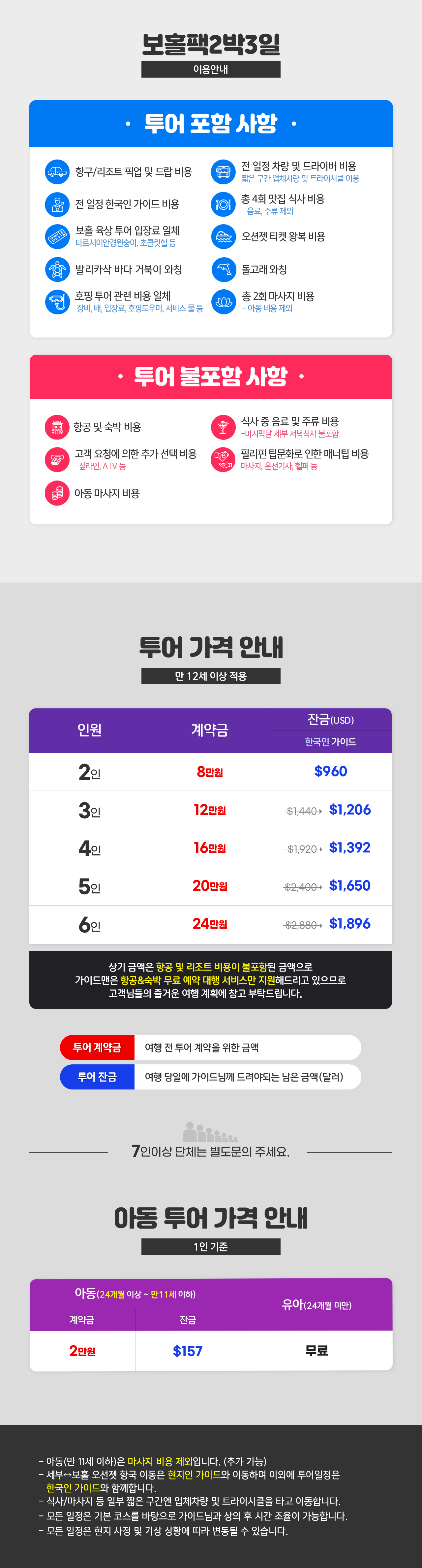 ※2명 여행시 아동/유아는 성인요금으로 받습니다.