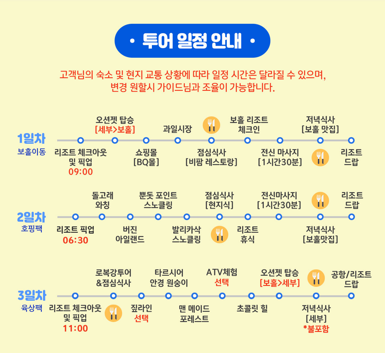 ※모든 일정은 현지 사정 및 기상 상황에 따라 변동될 수 있습니다.