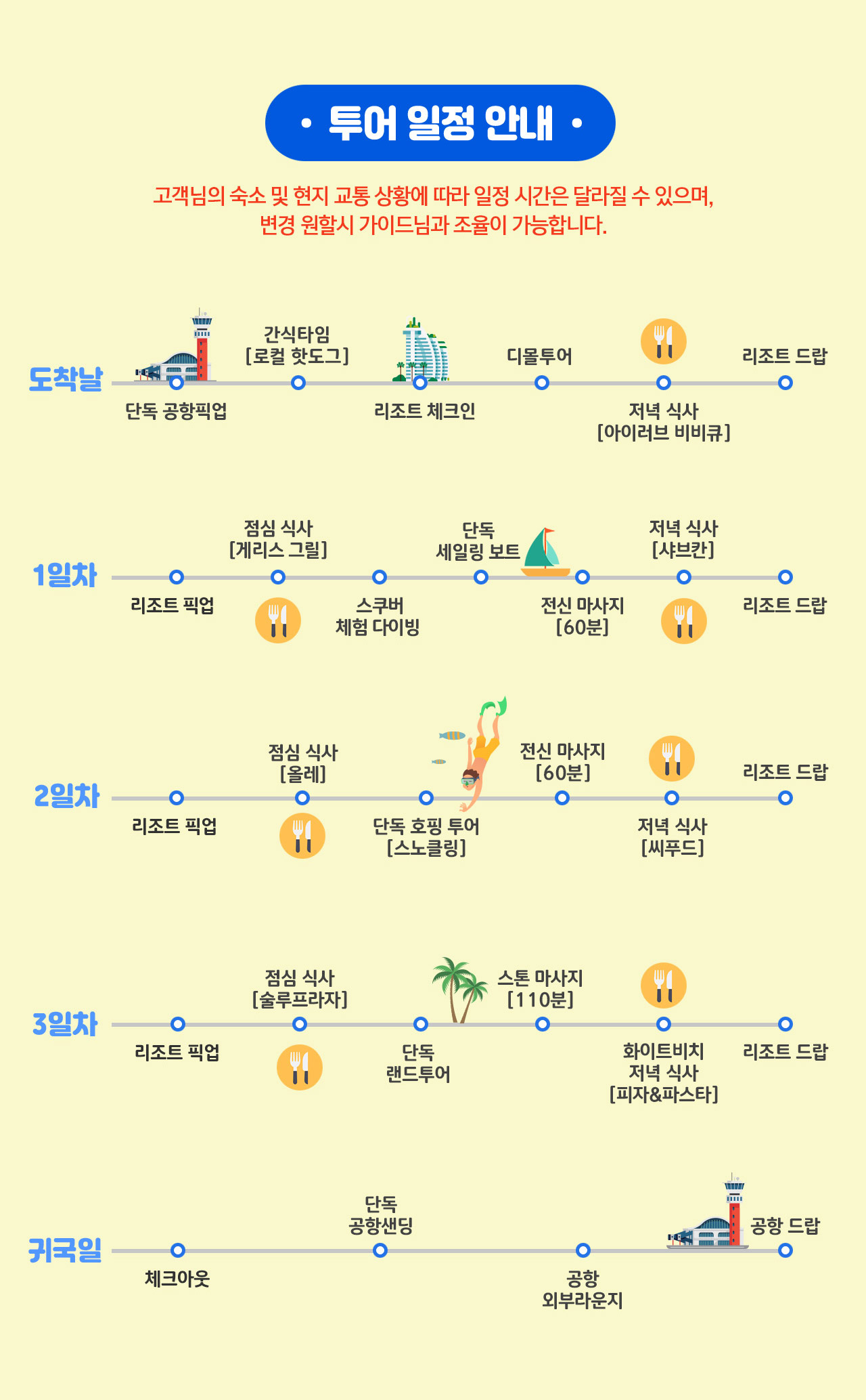 ※모든 일정은 현지 사정 및 기상 상황에 따라 변동될 수 있습니다.