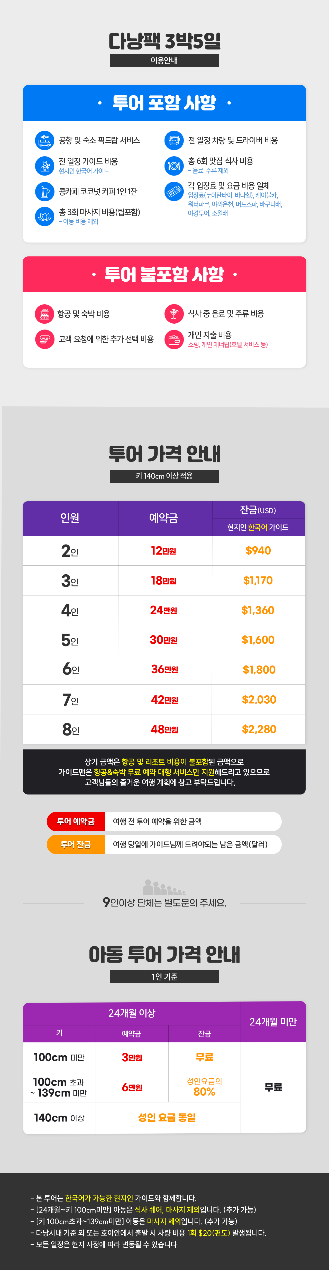 ※2명 여행시 아동/유아는 성인요금으로 받습니다.