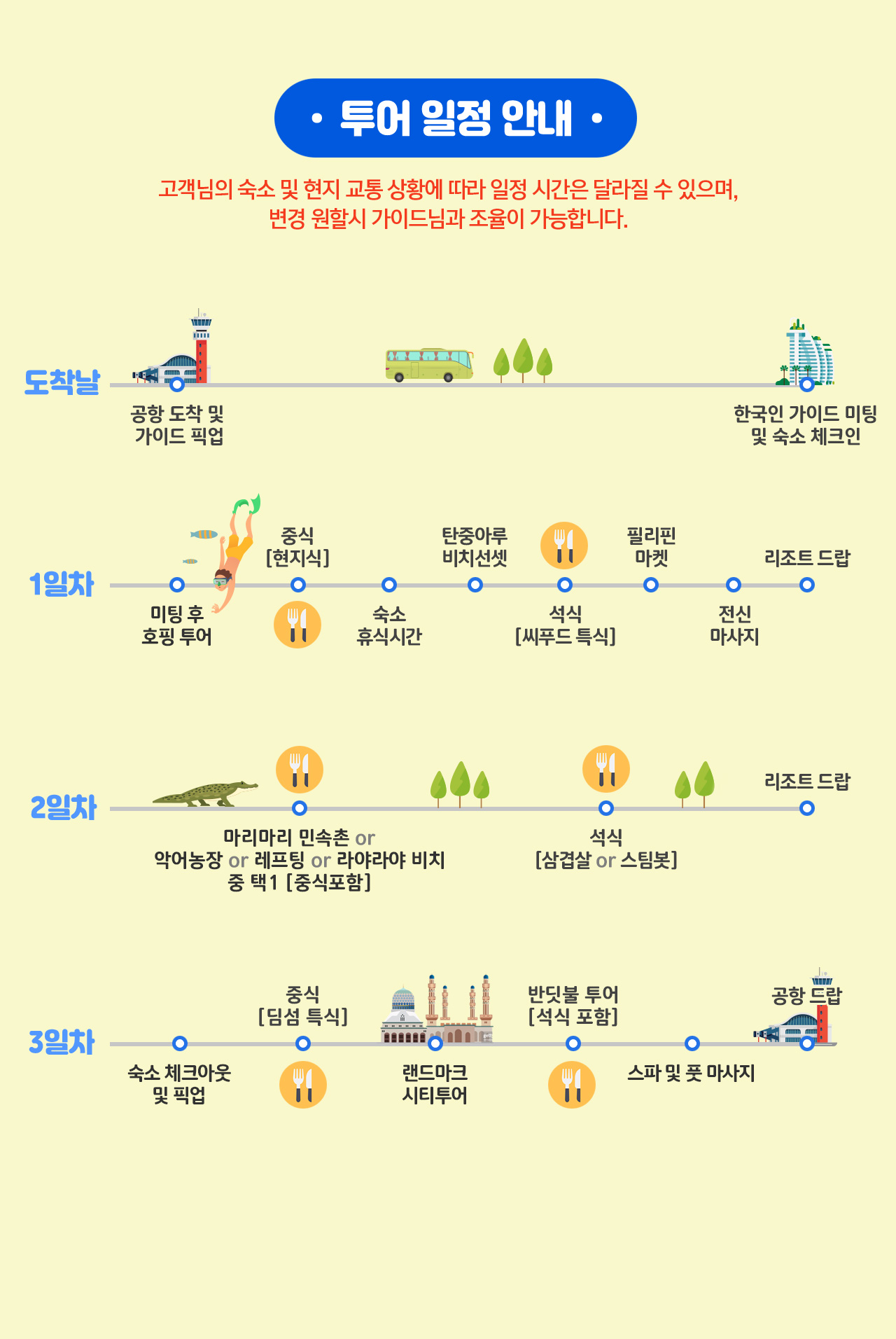 ※모든 일정은 현지 사정 및 기상 상황에 따라 변동될 수 있습니다.
