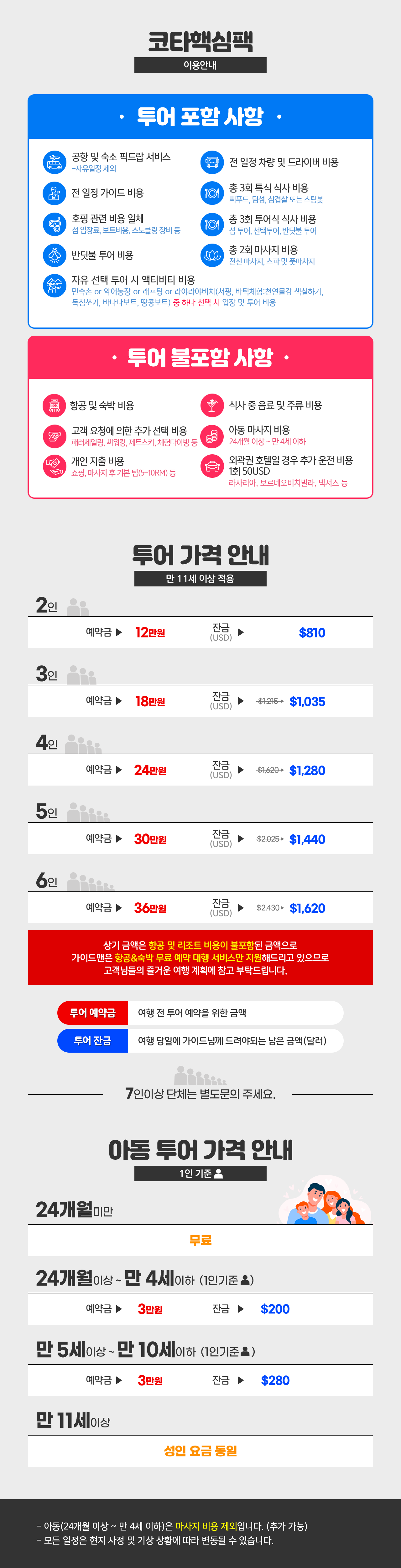 ※2명 여행시 아동/유아는 성인요금으로 받습니다.