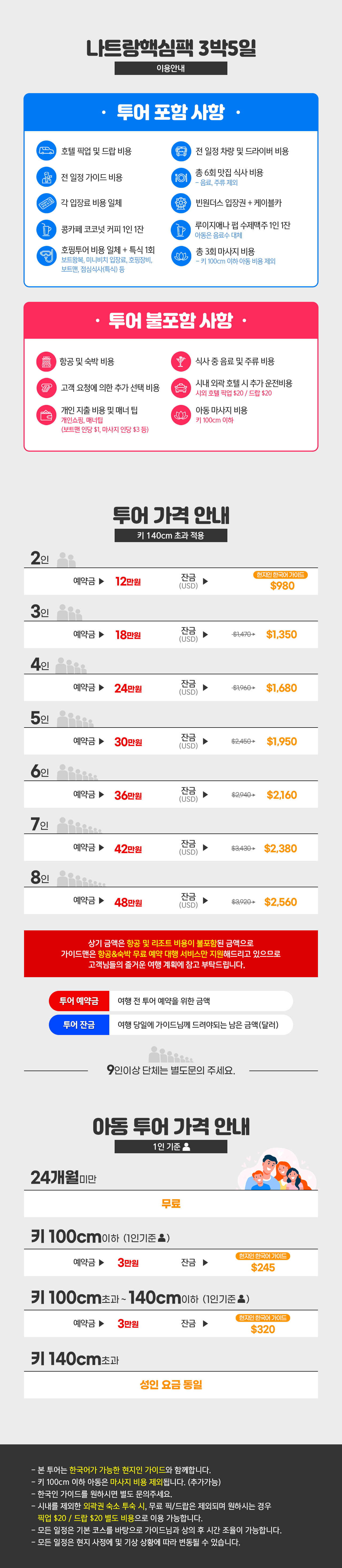 ※2명 여행시 아동/유아는 성인요금으로 받습니다.