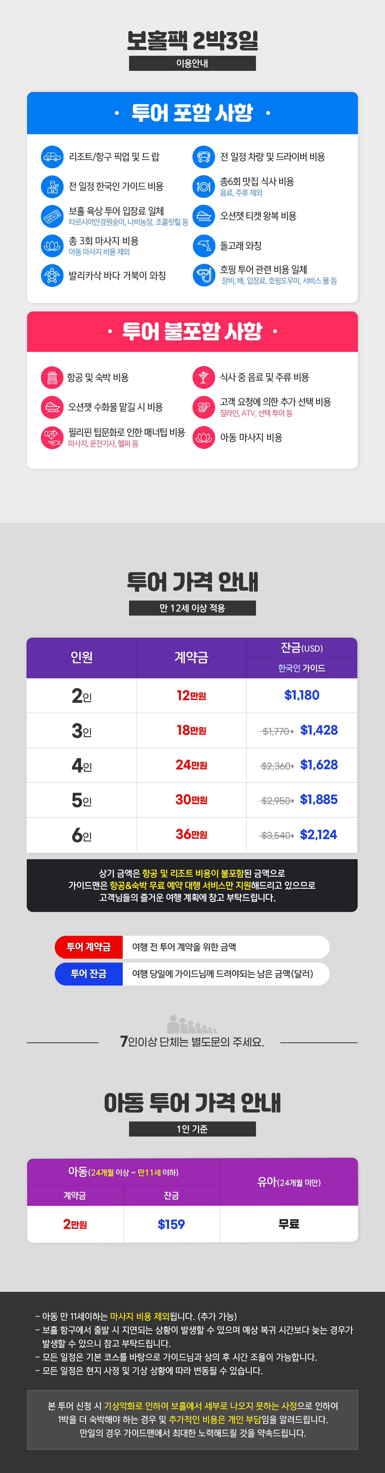※2명 여행시 아동/유아는 성인요금으로 받습니다.