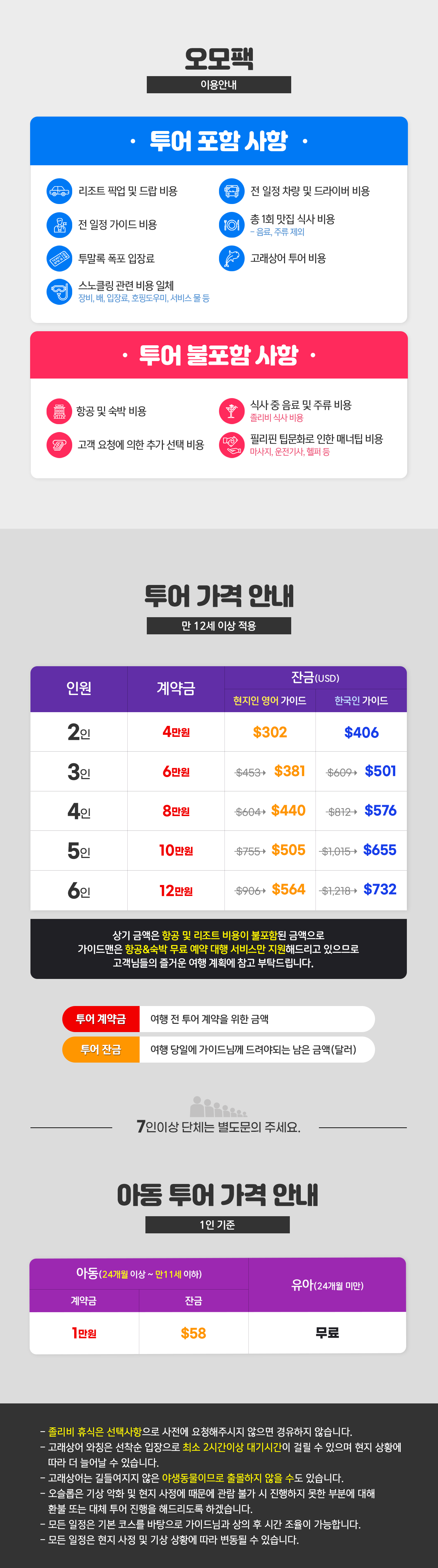 ※2명 여행시 아동/유아는 성인요금으로 받습니다.