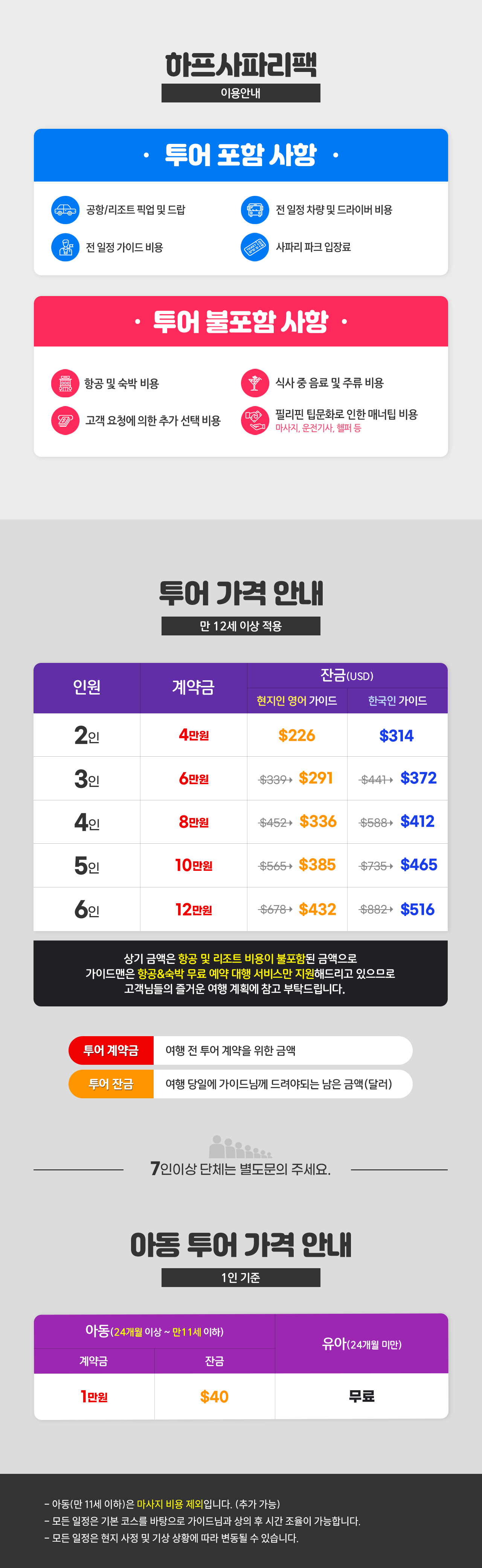 ※2명 여행시 아동/유아는 성인요금으로 받습니다.