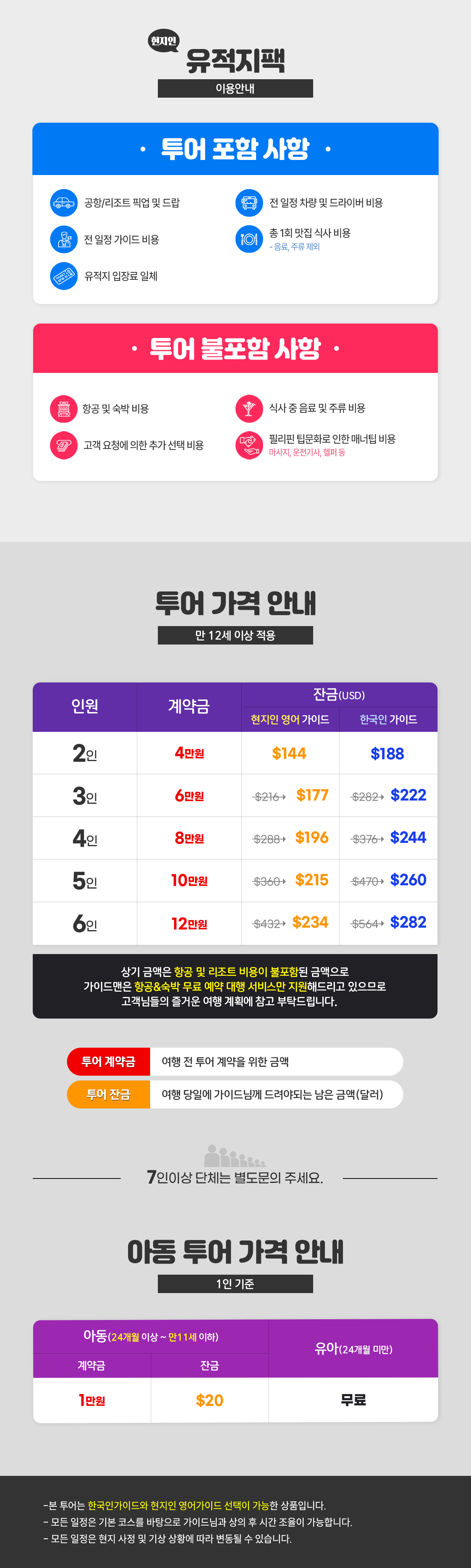 ※2명 여행시 아동/유아는 성인요금으로 받습니다.