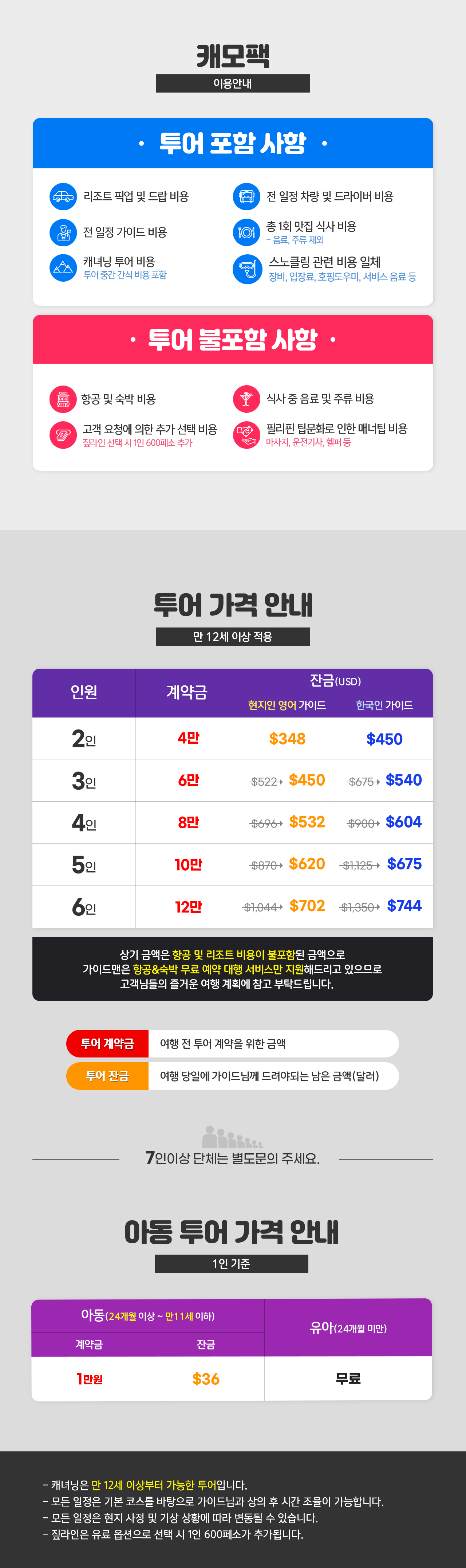 ※2명 여행시 아동/유아는 성인요금으로 받습니다.