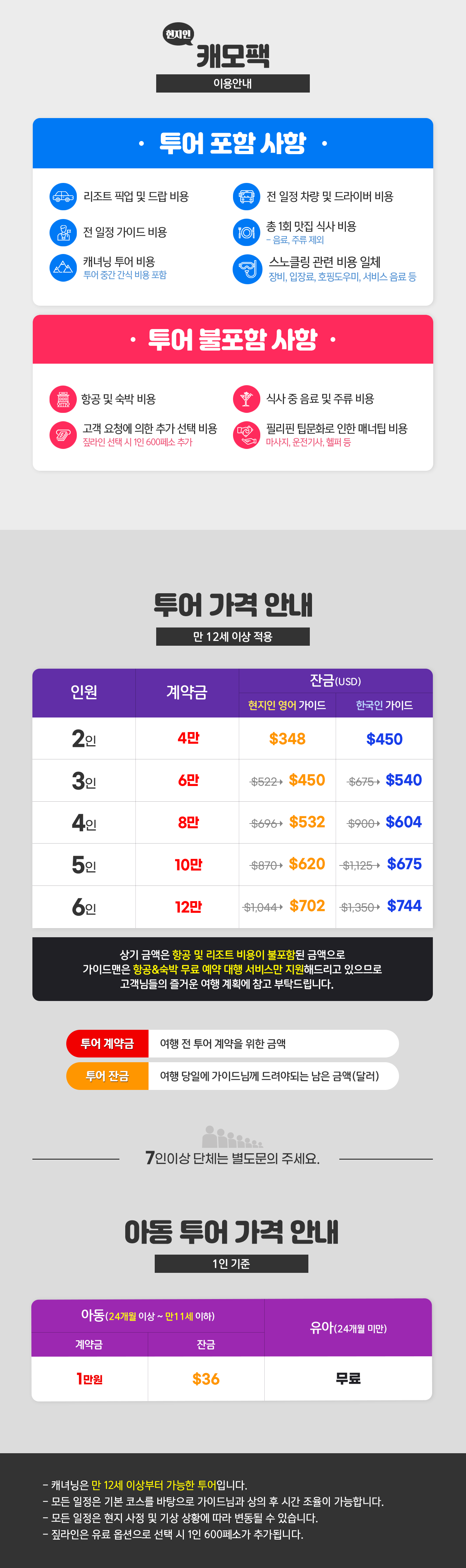 ※2명 여행시 아동/유아는 성인요금으로 받습니다.