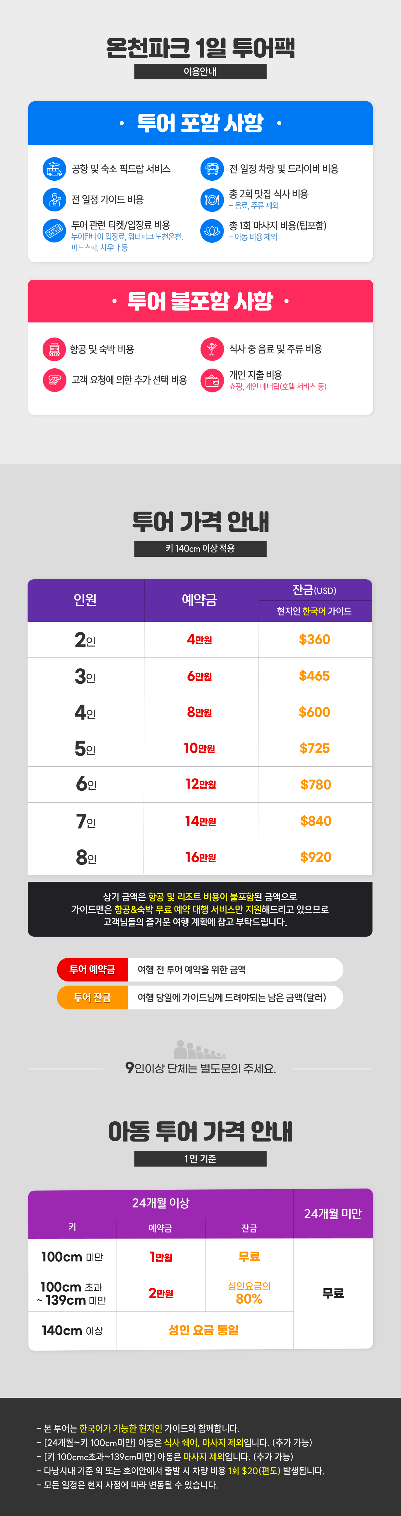 ※2명 여행시 아동/유아는 성인요금으로 받습니다.