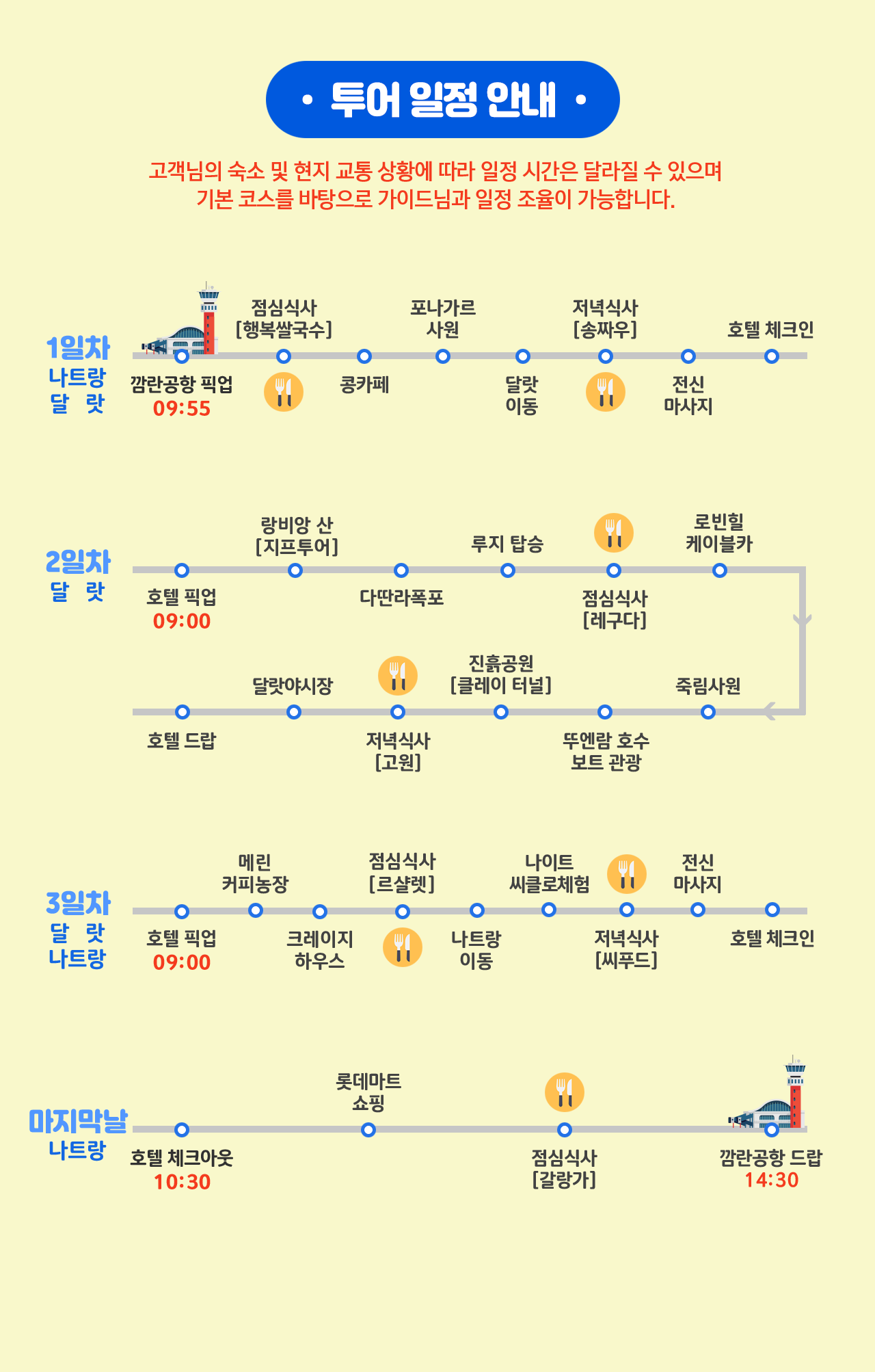 ※모든 일정은 현지 사정 및 기상 상황에 따라 변동될 수 있습니다.