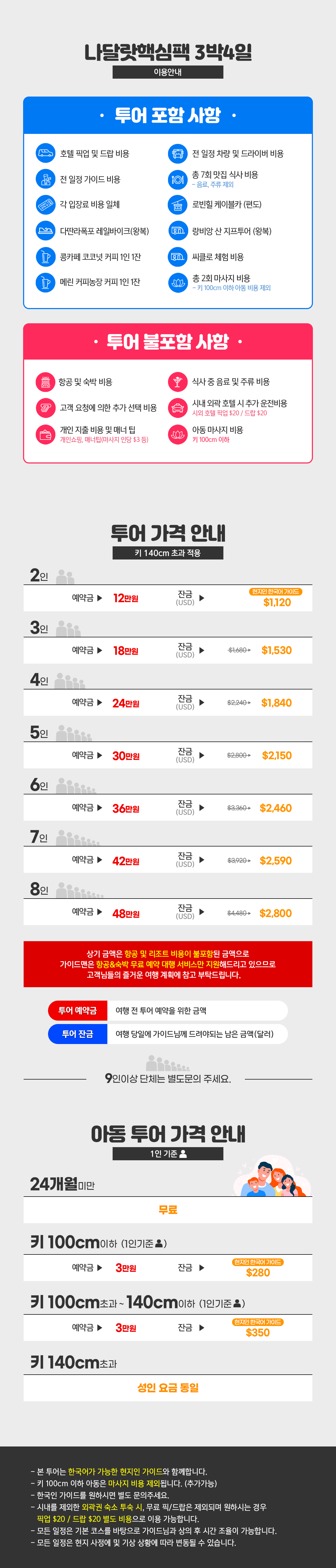 ※2명 여행시 아동/유아는 성인요금으로 받습니다.