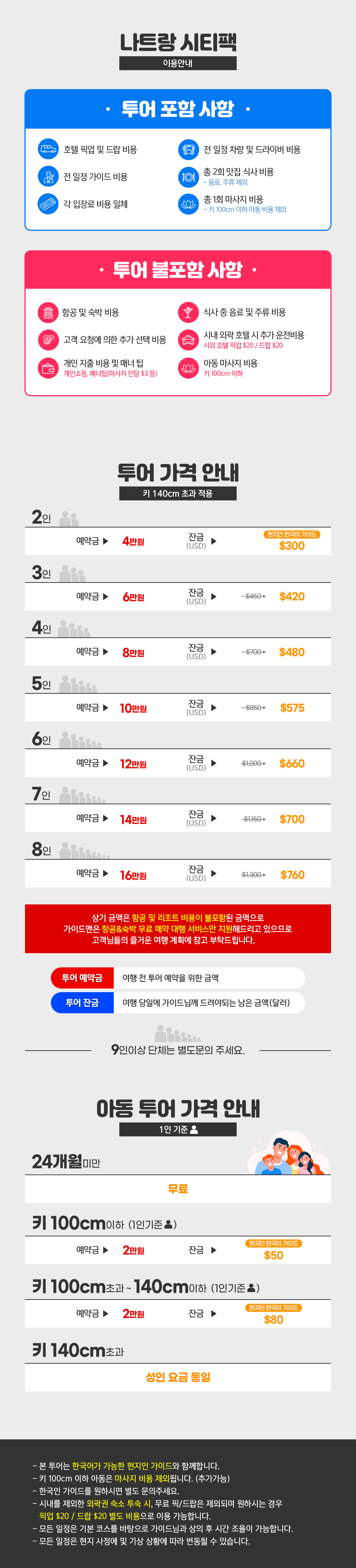 ※2명 여행시 아동/유아는 성인요금으로 받습니다.