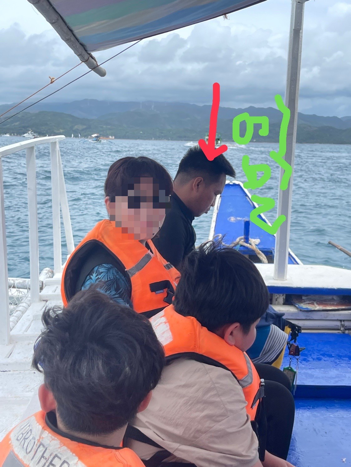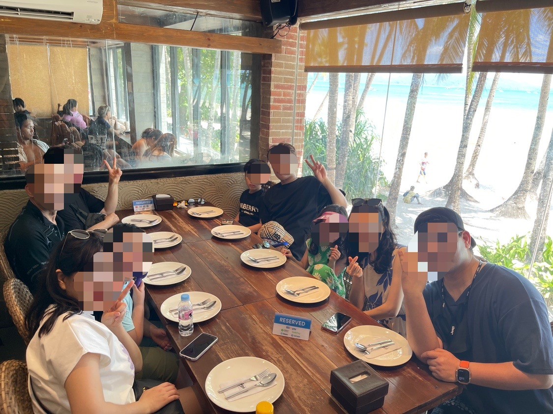식사부터 시작해서 세일링 보트 예약까지 전혀 저희가 할 일이 없었답니다. 남는건 사진 밖에 없다면서 계속 가족들 사진을 찍어주시고, 캐시님 또한 아무리 보라카이 날씨에 적응했다 하더라도 더울텐데 오로지 우리 가족 9명을 계속 신경 쓰시더라구요. 세일링 보트 예약이 될 때까지 계속 에밀 가이드님하고 연락 주고 받고 일정 취소 되지 않게 해 주셔서 정말 세일링 보트는 위에 사진 처럼 해가 질 무렵 덥지 않고 시원하게 잘 탔었답니다^^