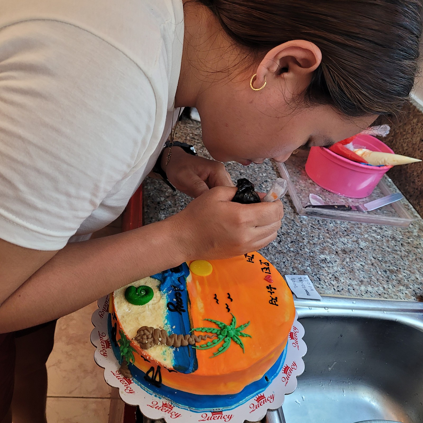 너무 예쁜 보라카이 석양 케이크에 한글로 레터링까지~~