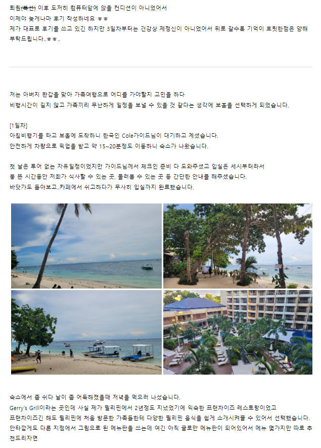여행후기 본문:https://cafe.naver.com/boholguideman/7189