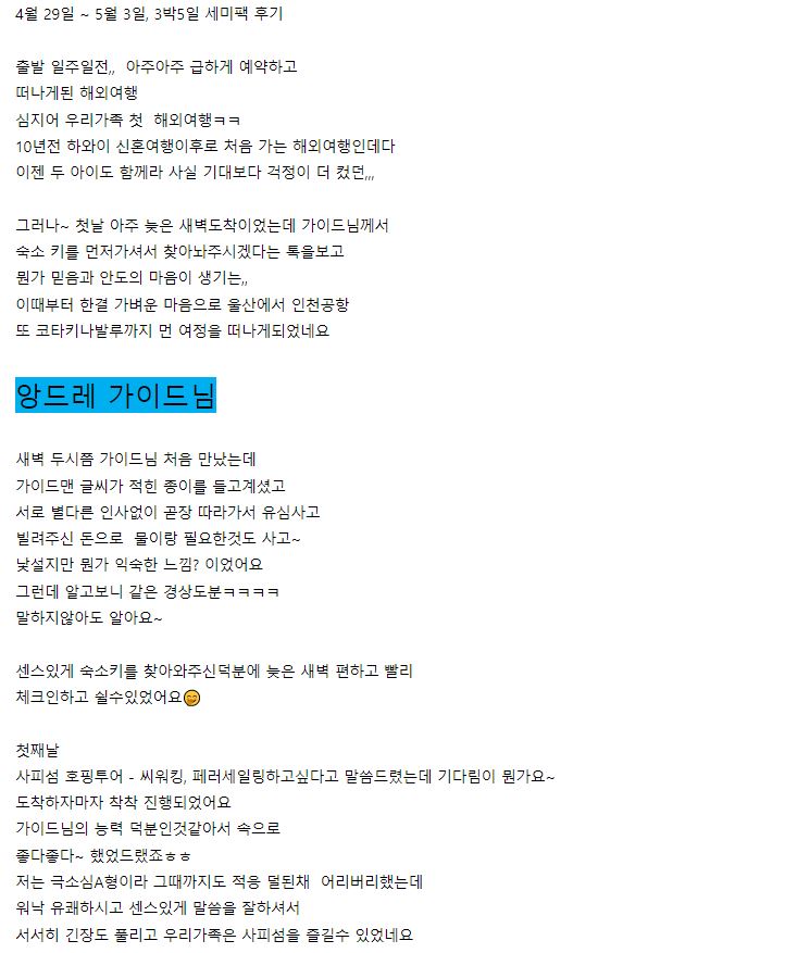 여행후기 본문: