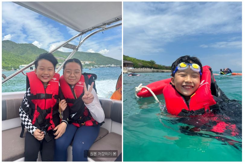 그런데 리조트에 구명조끼가 없어 못 놀고 있던 조카를 위해 하니가이드님이 가이드맨에 연락을 해주셨고 가이드맨에서 그랩오토바이를 이용해 발빠르게 구명조끼를 보내주셨어요~~~완전 감동!