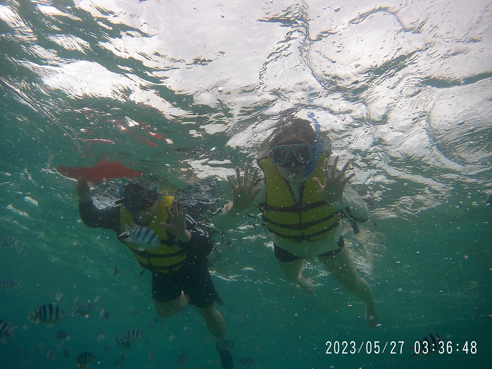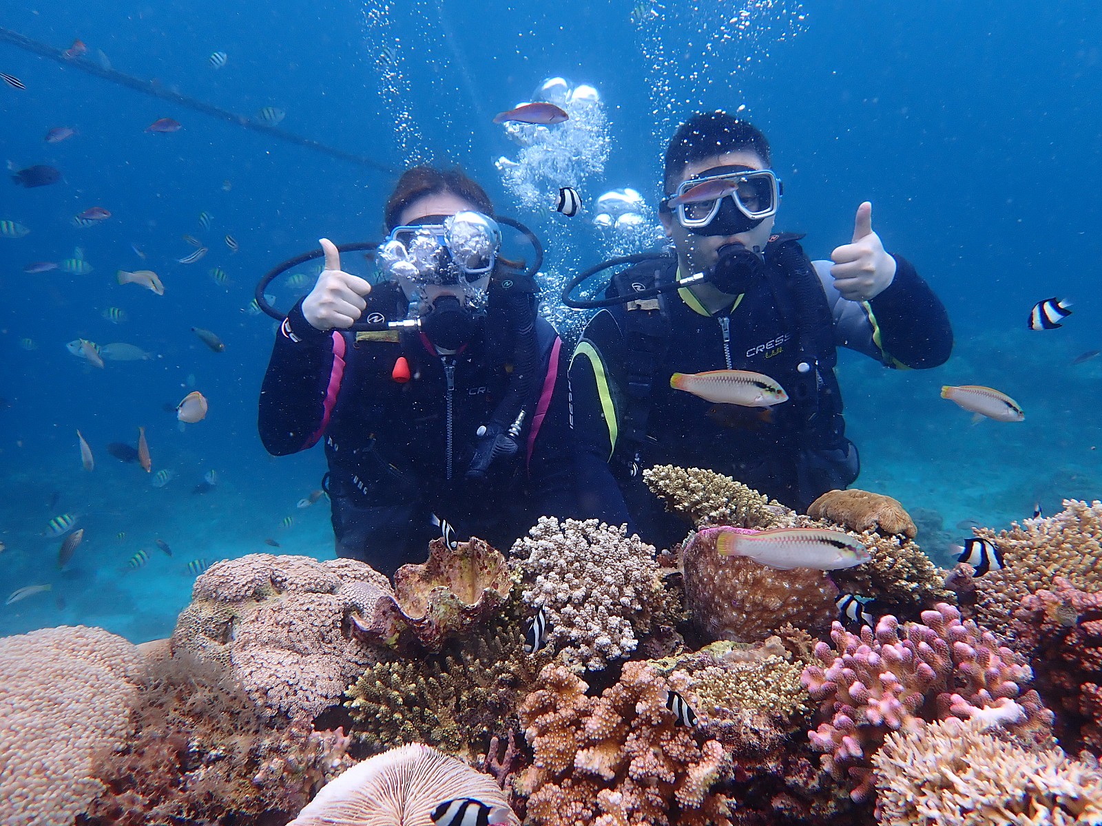 첫째날은 태풍일정으로 다이빙 +호핑투어다하기 위해서 9시에 만나서 바로 다이빙투어로 가서 짧고 재밌는 강습을 받고 배타고 다이빙 고고 ~ 저는 코로 숨쉬는게 적응이 안되서 몇번? 의 실패 끝에 적응하고 니모도 만나고 즐거웠어요