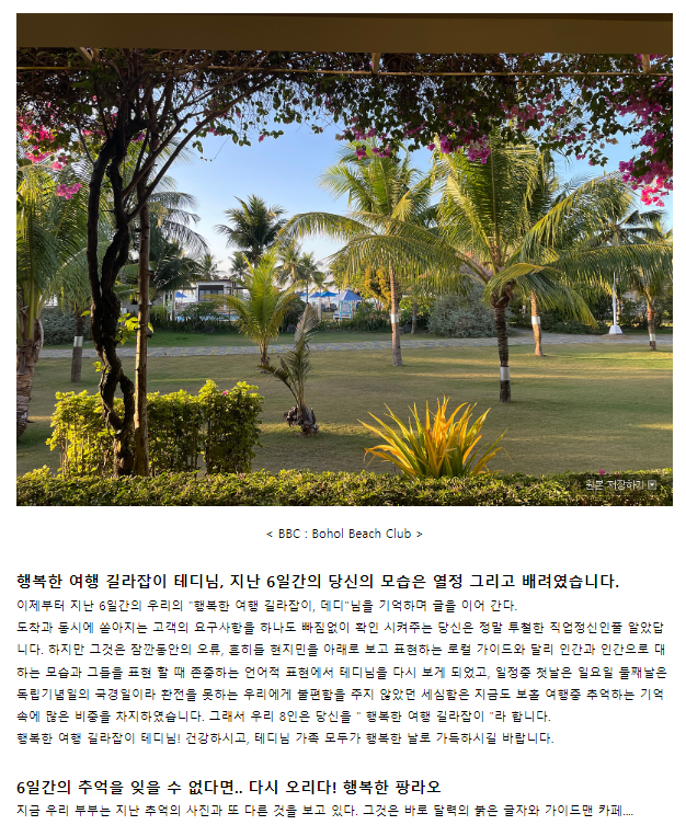 여행후기 본문: https://cafe.naver.com/boholguideman/8165(2023.06.20)