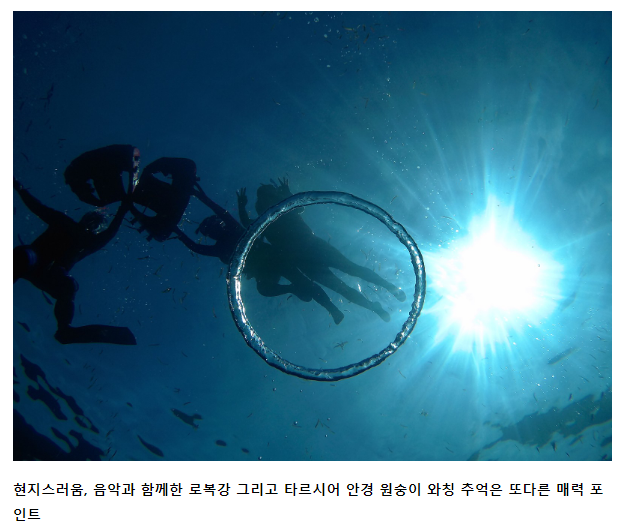 5. 선택 패키지 : 돌고래 와칭, 버진아일랜드, 발리카삭 호핑투어, 고래상어 와칭, 나팔링 포인트 스노쿨링, 로복강투어, 타르시어 안경 원숭이, 초코릿힐, 전신마사지(3회), 일정중 현지식