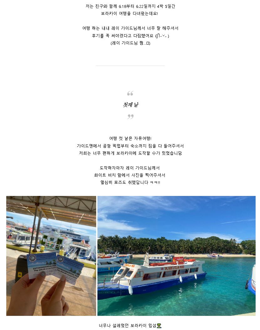 [보라카이] 레이 가이드님과 함께한 4박 5일 보라카이 여행 후기