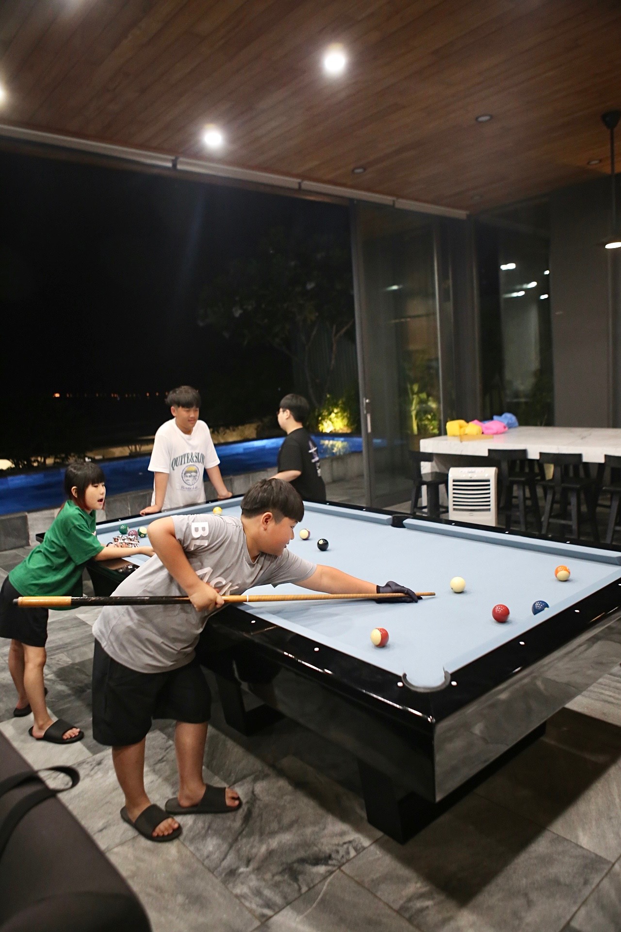 저녁에 엄청 분위기 있습니다. 포켓볼도 가능