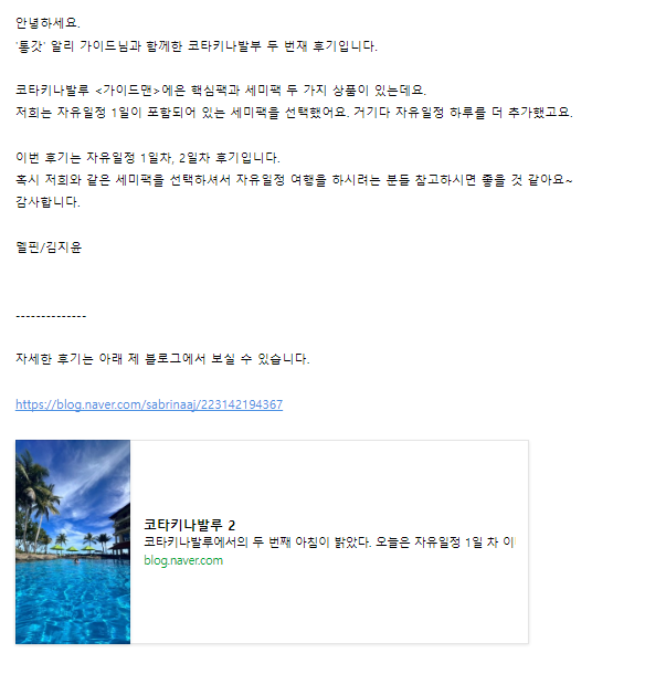 여행후기 본문: