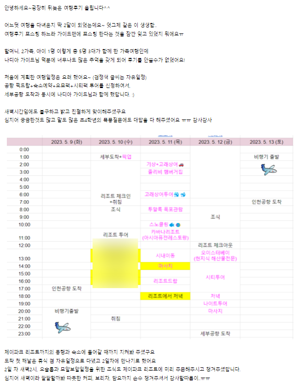 여행후기 본문: