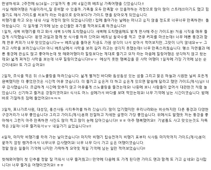 [나트랑] [6월24일~28일]나트랑 나판랑핵심팩 가족여행후기(가이드맨홈페이지 게시글 퍼옴0-제시가이드님