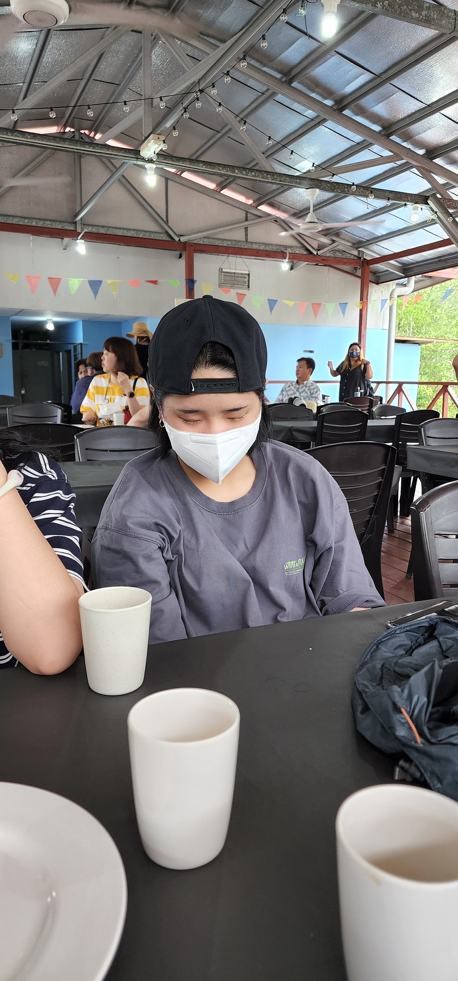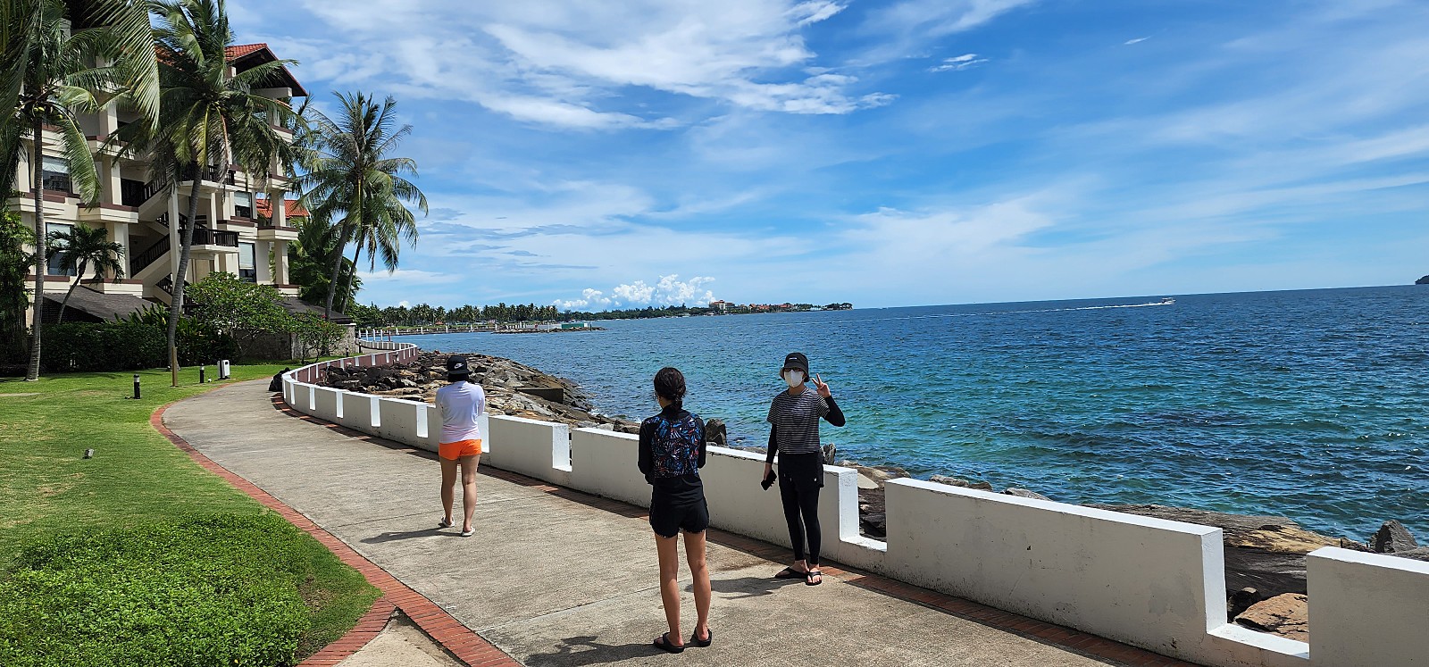 "사피섬"으로 이동하기위해 선착장에서 대기 중 장소에 관한 여러 이야기와 음식 설명 및 퀴즈 등 딸들 분위기를