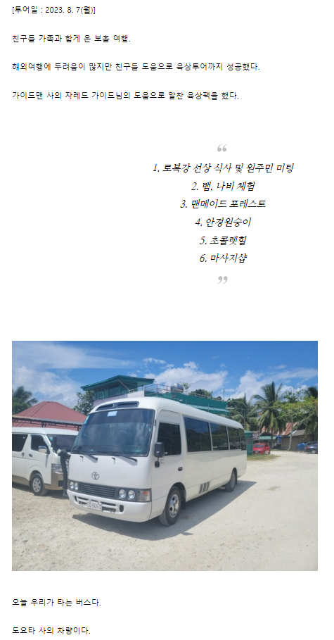 여행후기 본문:https://cafe.naver.com/boholguideman/9960