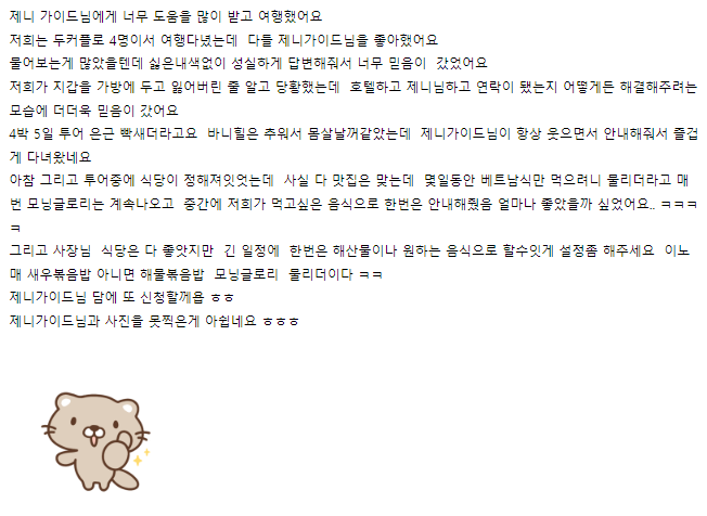 여행후기 본문:https://cafe.naver.com/guidemandanang/14957