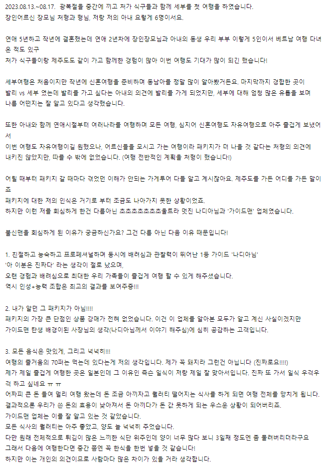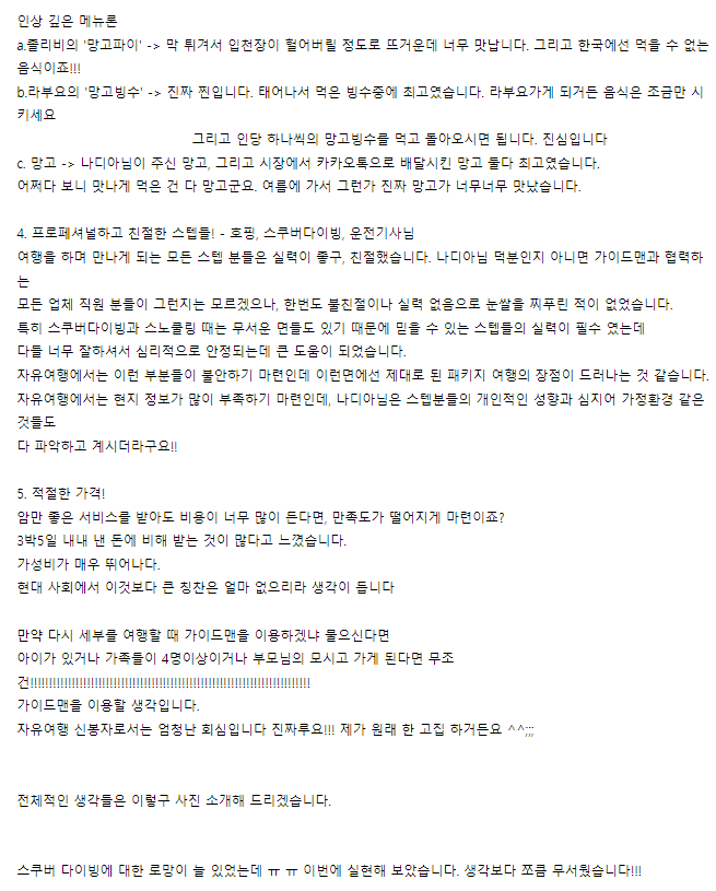Main text of travel review: https://cafe.naver.com/cebuguideman/61858