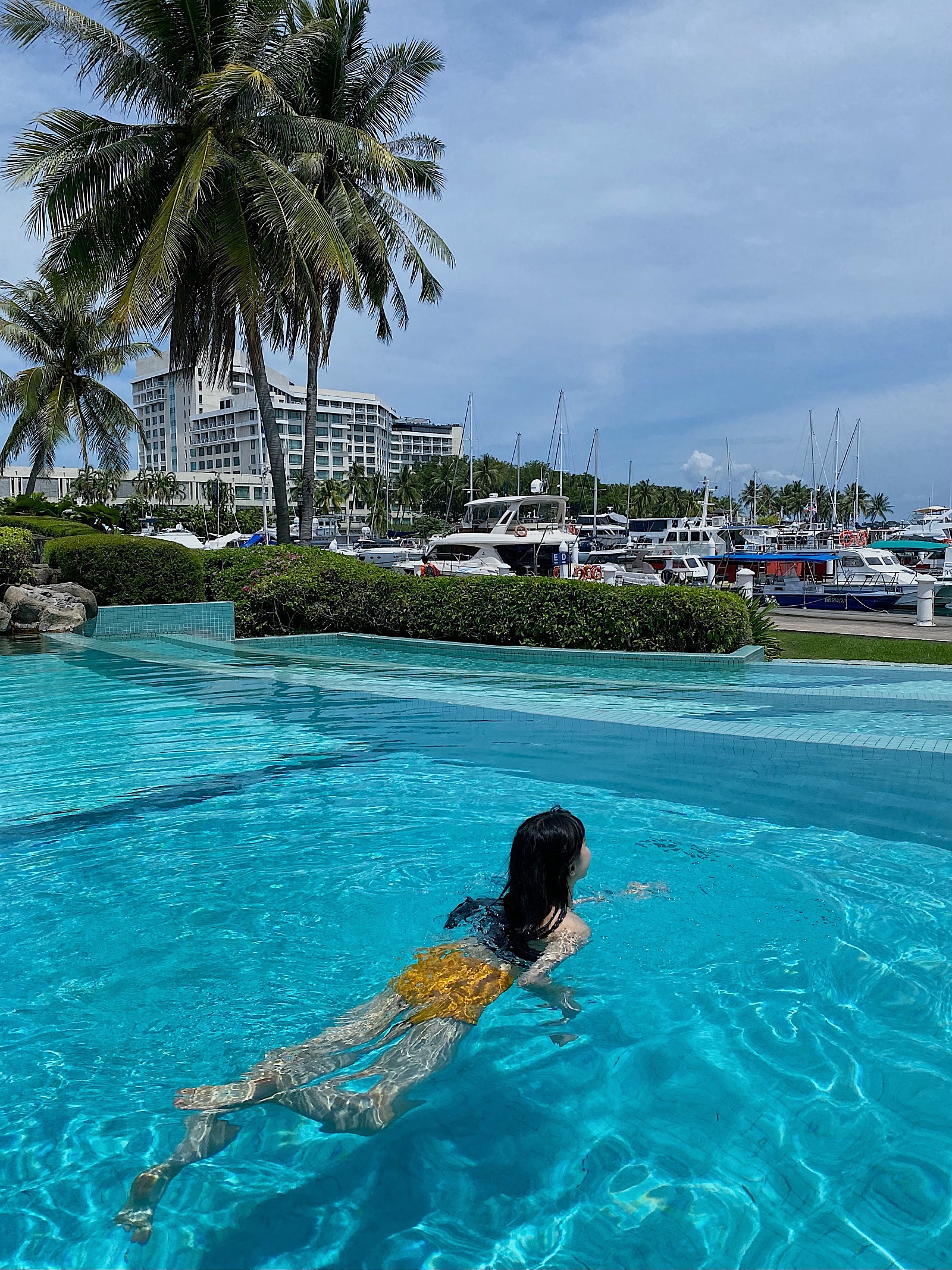 수트라 하버 리조트에서 아침 수영하구 시내로 나갈 예정이었는데