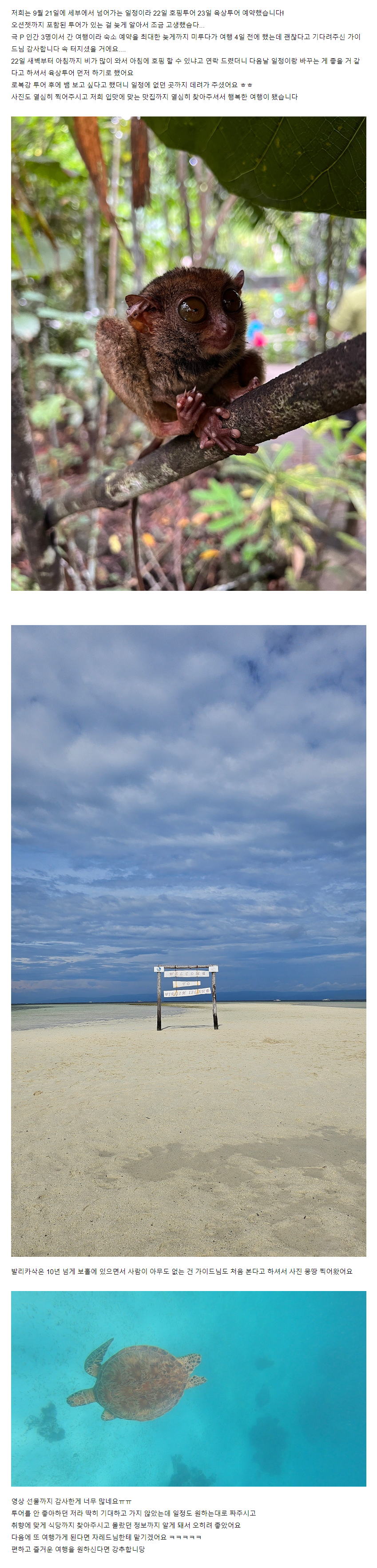 여행후기 본문:https://cafe.naver.com/boholguideman/12133