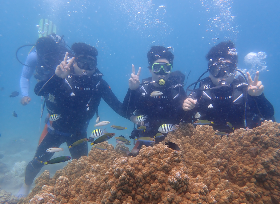 본격적으로 바다에 나가 다이빙을 했습니다. 처음엔 숨쉬기 답답하고 힘들었지만 시간이 지나고 적응도 하고 물속에서 물고기들을 보면서 사진도 찍어주셨습니다.