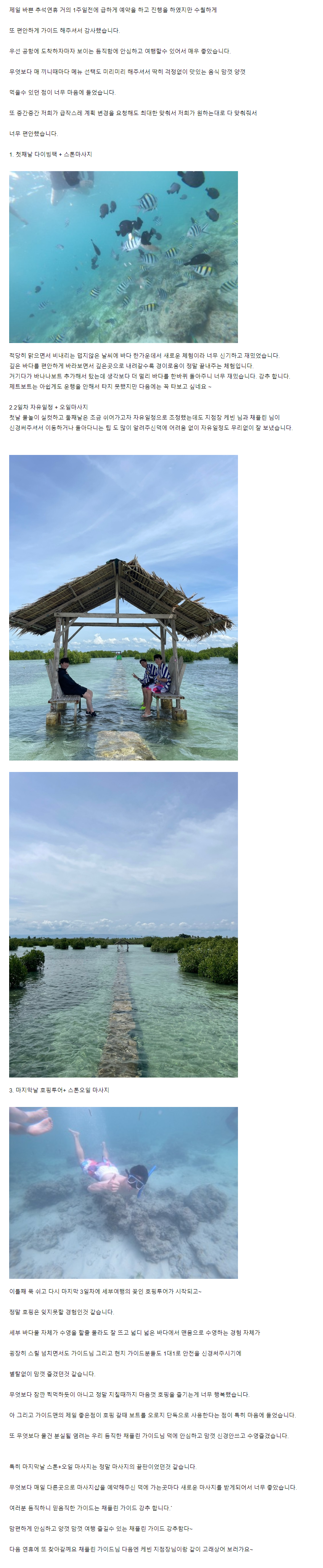 Main text of travel review: https://cafe.naver.com/cebuguideman/63989