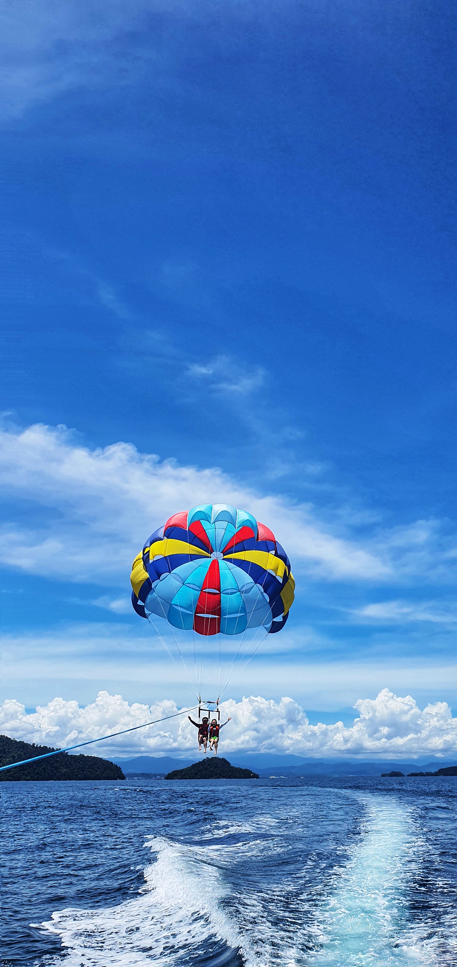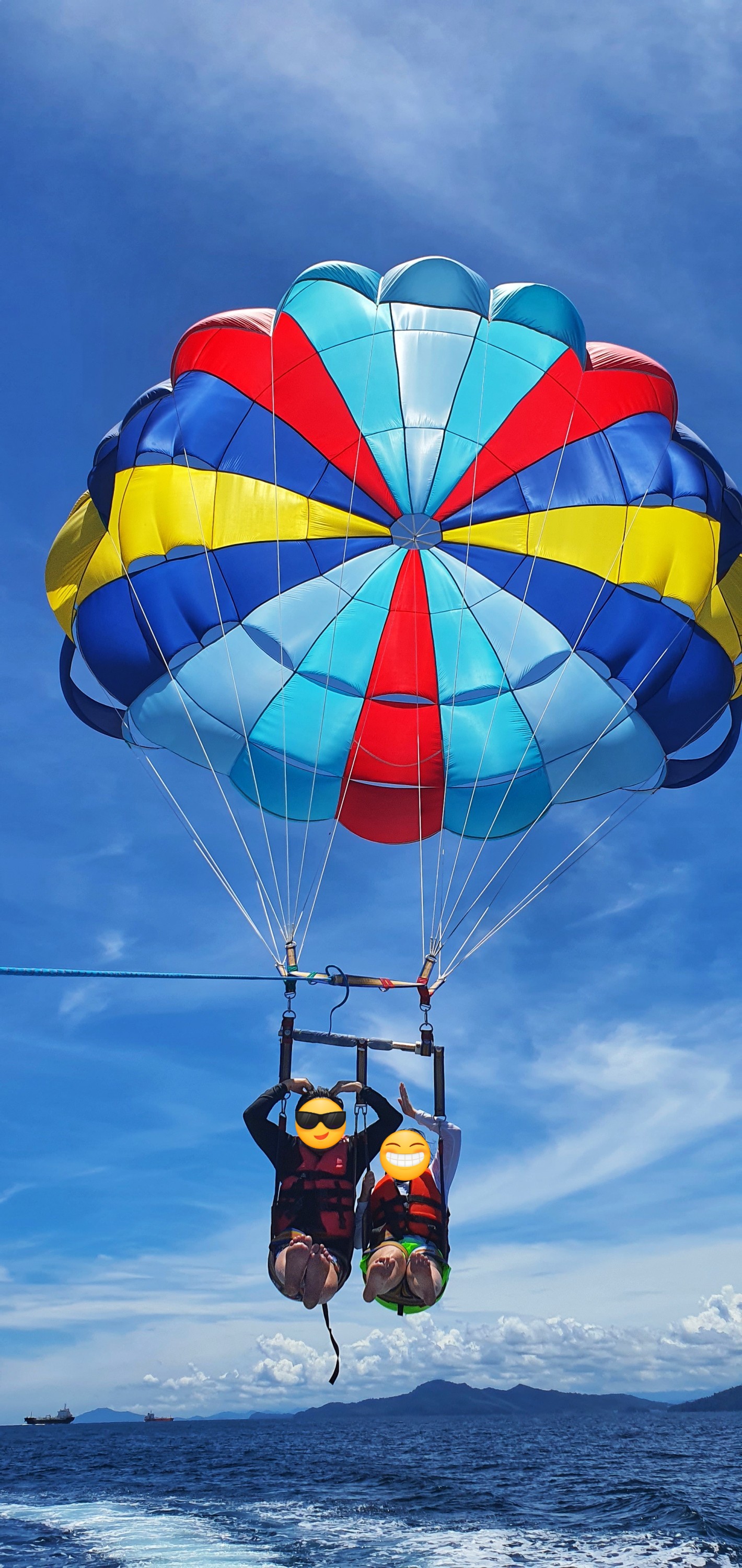 배에 낙하산 묶어놓고 빠른 속도로 달리면 저렇게 낙하산을 타고 하늘을 나르는 것인데요!