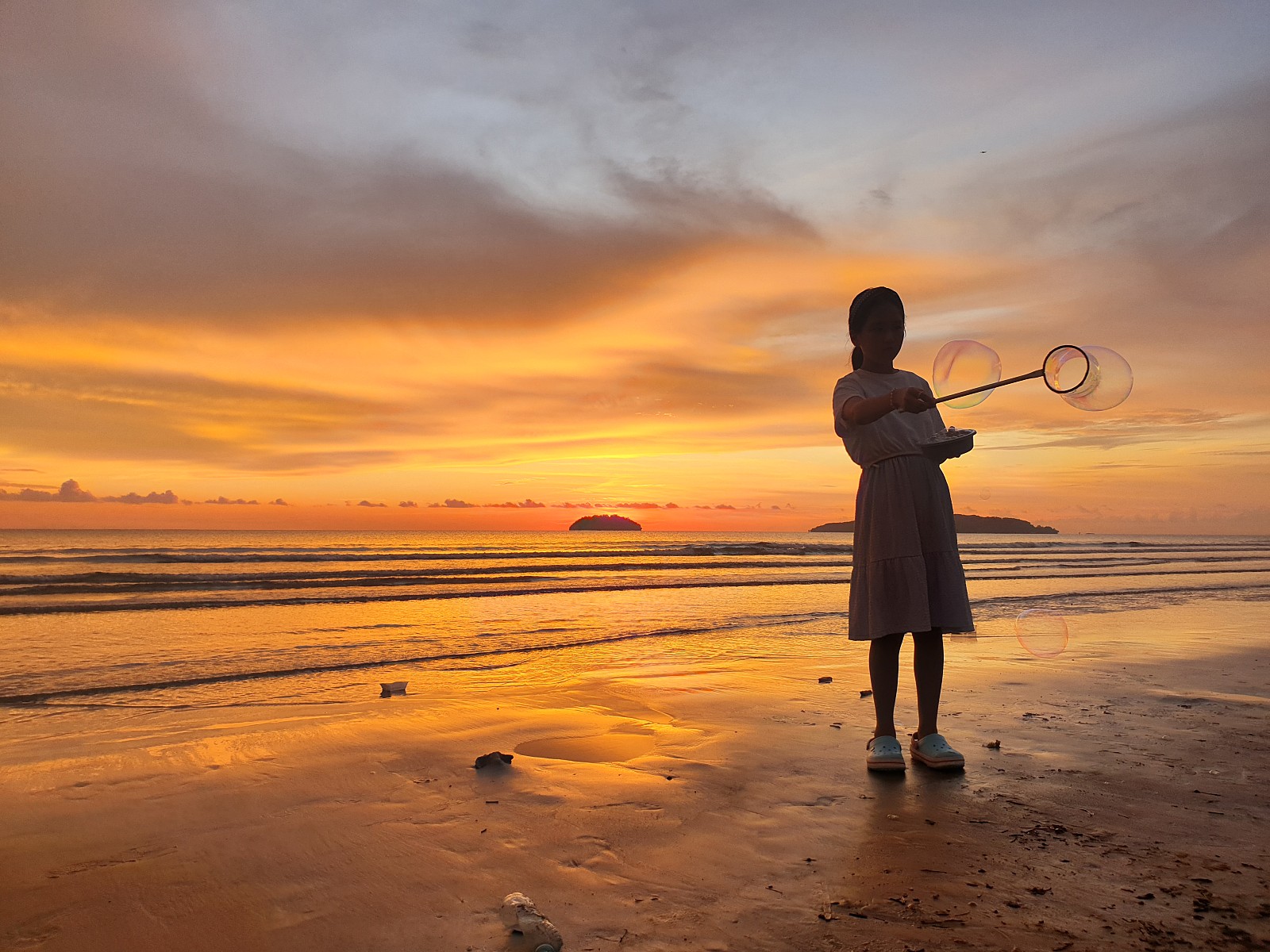 탄중아루 선셋 절경을 앞에 두고 삐진 딸 달래주시느라 부모 보다 고생한 가이드님... 가이드님이 건내주신 비눗방울 덕에 다행히 사진은 잘 남겼네요. 비눗방울을 좋아하는 동심이 아직 살아 있어 다행입니다.