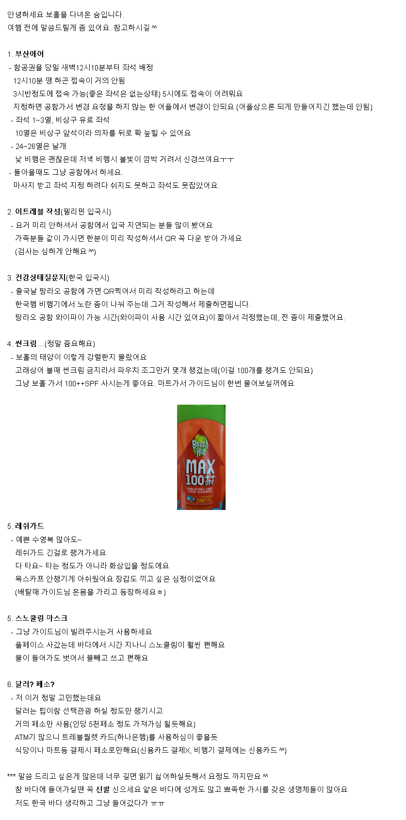 [보홀] 부산에어 탑승, 이트래블/건강상태질문서 작성, 레쉬가드등