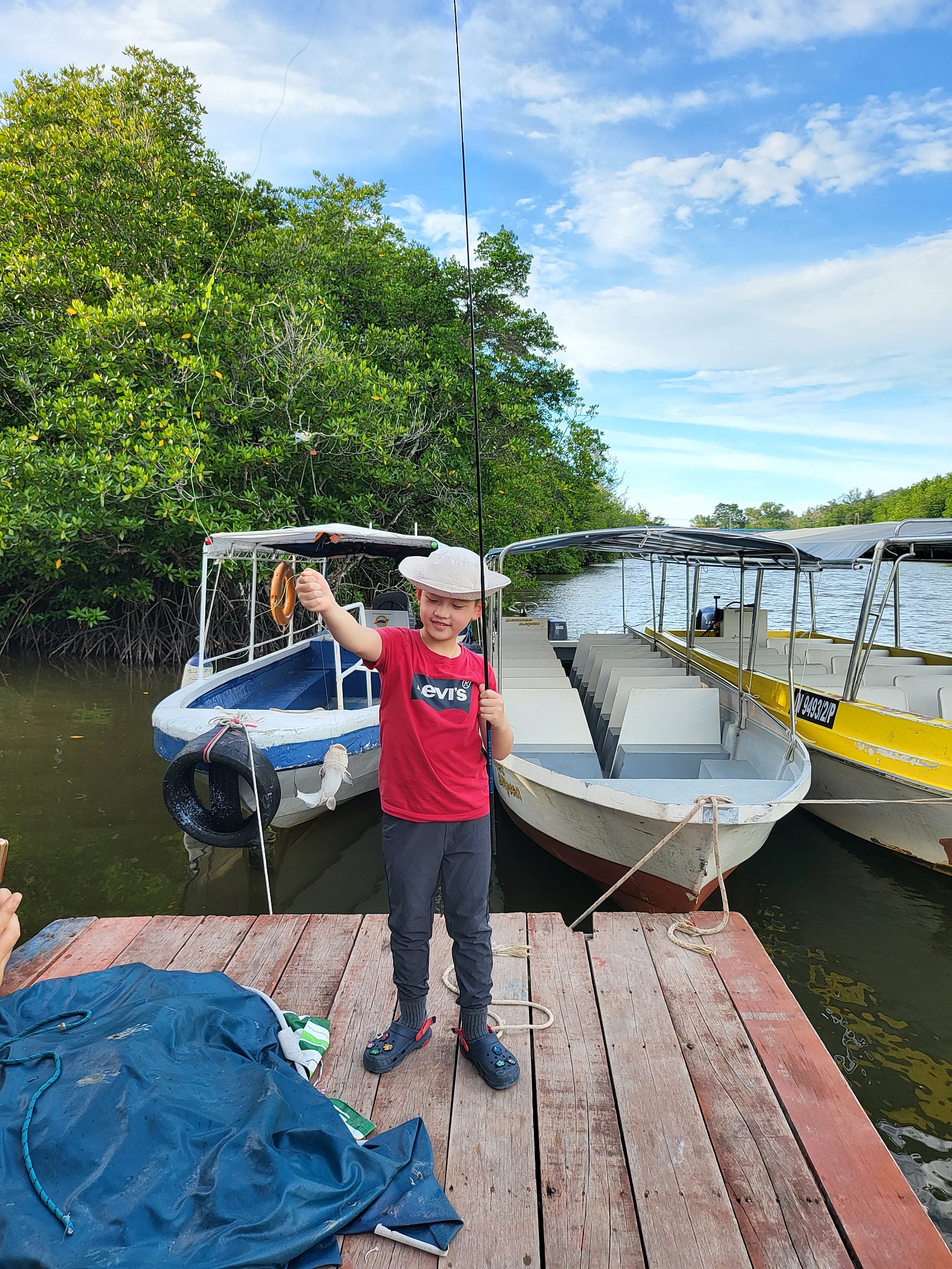 반딧불이 보러 맹글로브 숲에 갔는데.. 우리 신랑은 여기서도 낚시꾼의 본능을 숨기지 못하고 물에 빠져있는 낚시대를 건져와 기어코 물고기를 잡았다는..