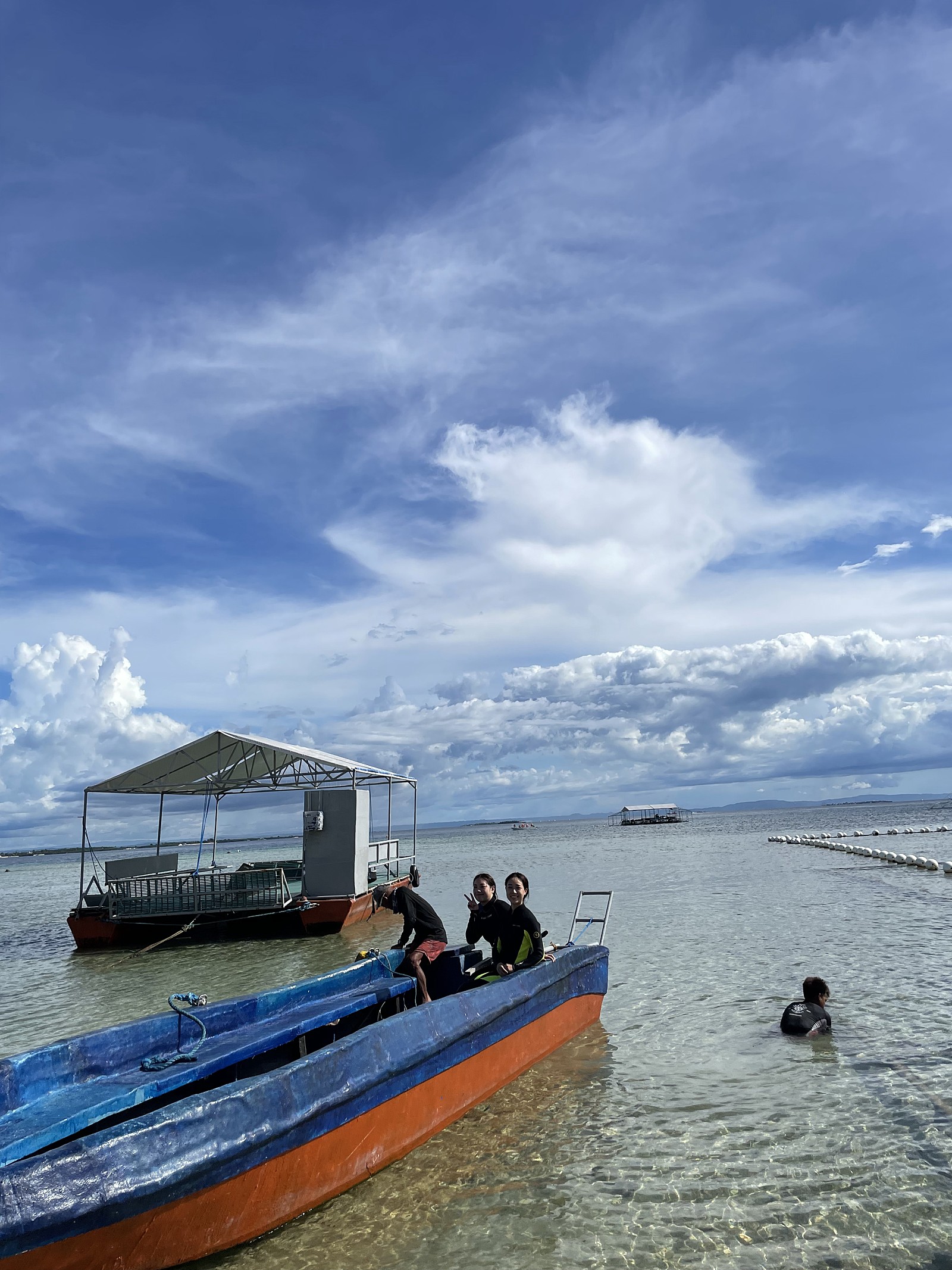 정신차리니 배타고 고래상어한테 가고있었어요