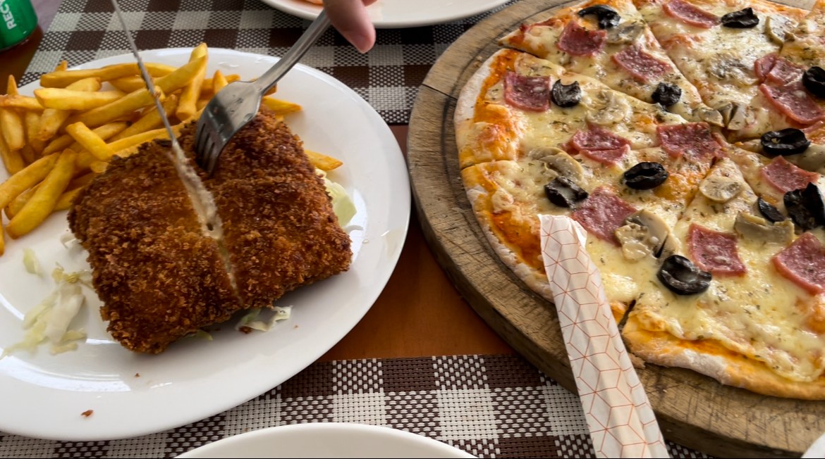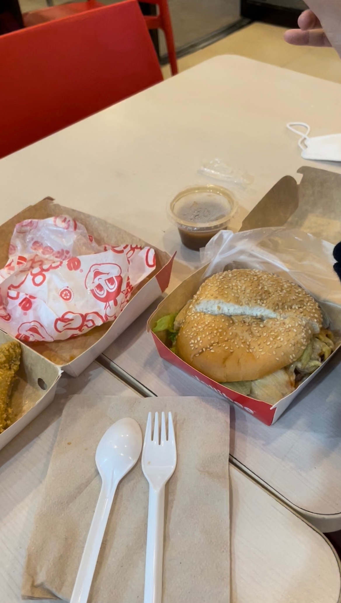 첫날 마트가서 과자랑 음료들 쇼핑하고 졸리비에서 버거,치킨밥,피자 먹었어요!