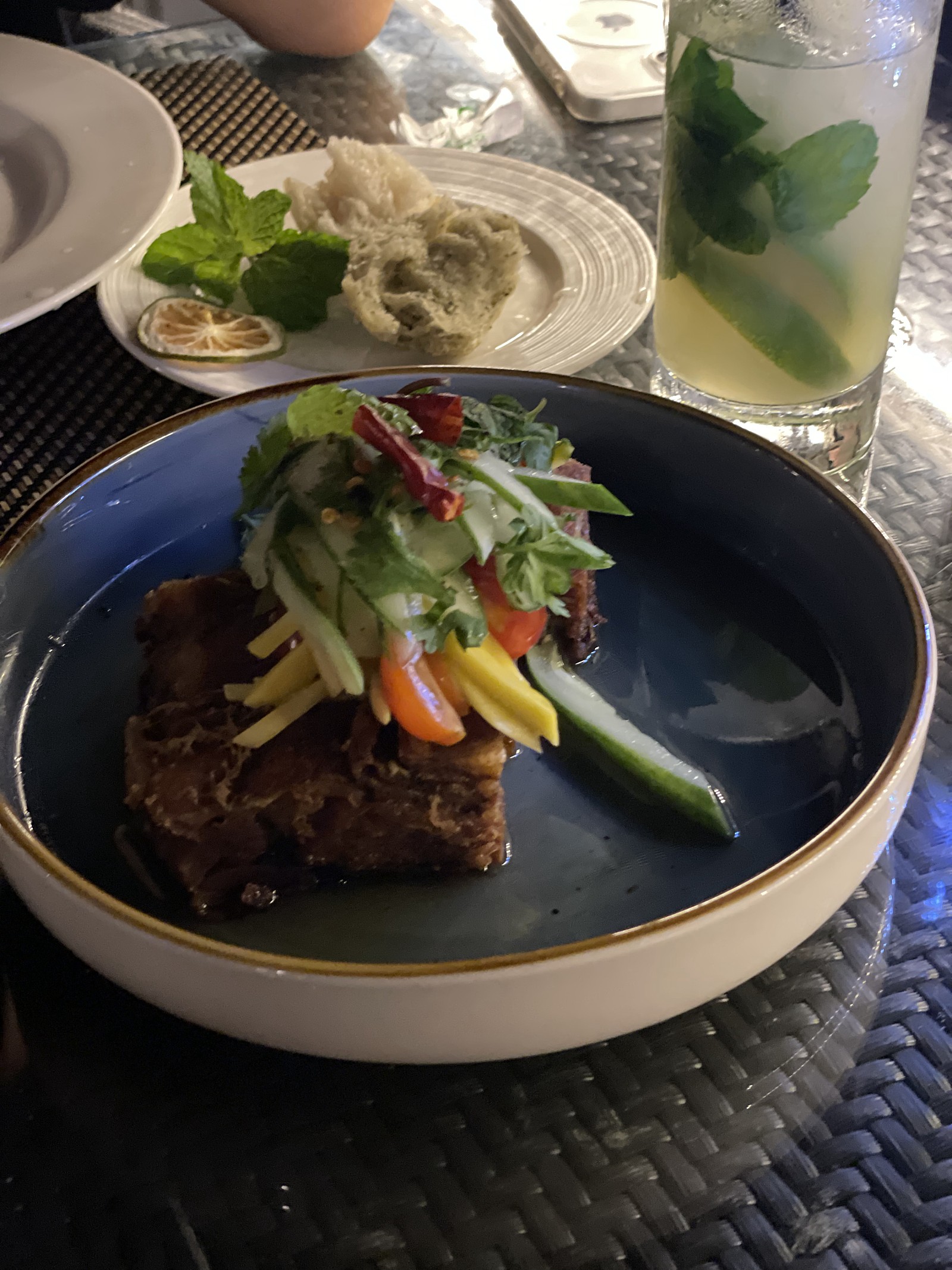 농어스테이크 ( 라푸라푸 = 농어래요), 족발튀김 같은? 음식과 칵테일을 시켜서 먹었답니다